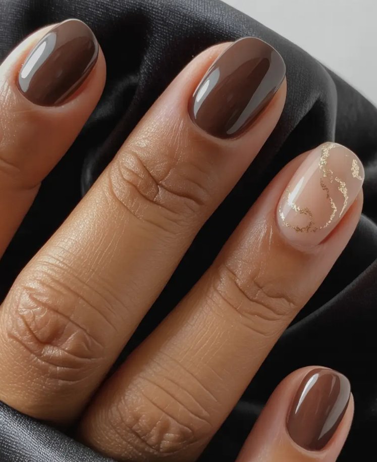 3. Espresso Gloss With Nude + Gold Veining