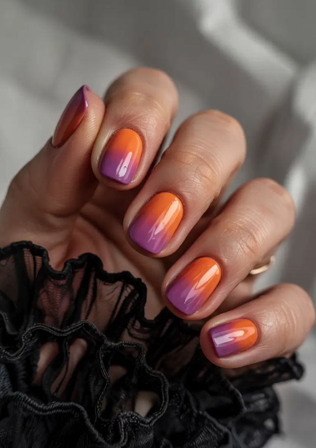 This sunset inspiration is sunny and burnished all the way through orange to violet. The shiny mix adds a warm energy to your brevities during fall, so it is ideal to wear by any individual, who is addicted to the sky of the golden hour. And yes — this one is very 2025 matte adaptable if you’re feeling more muted.
