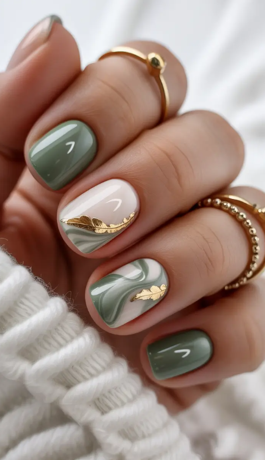 1. Olive Marble With Gold Leaf Accents